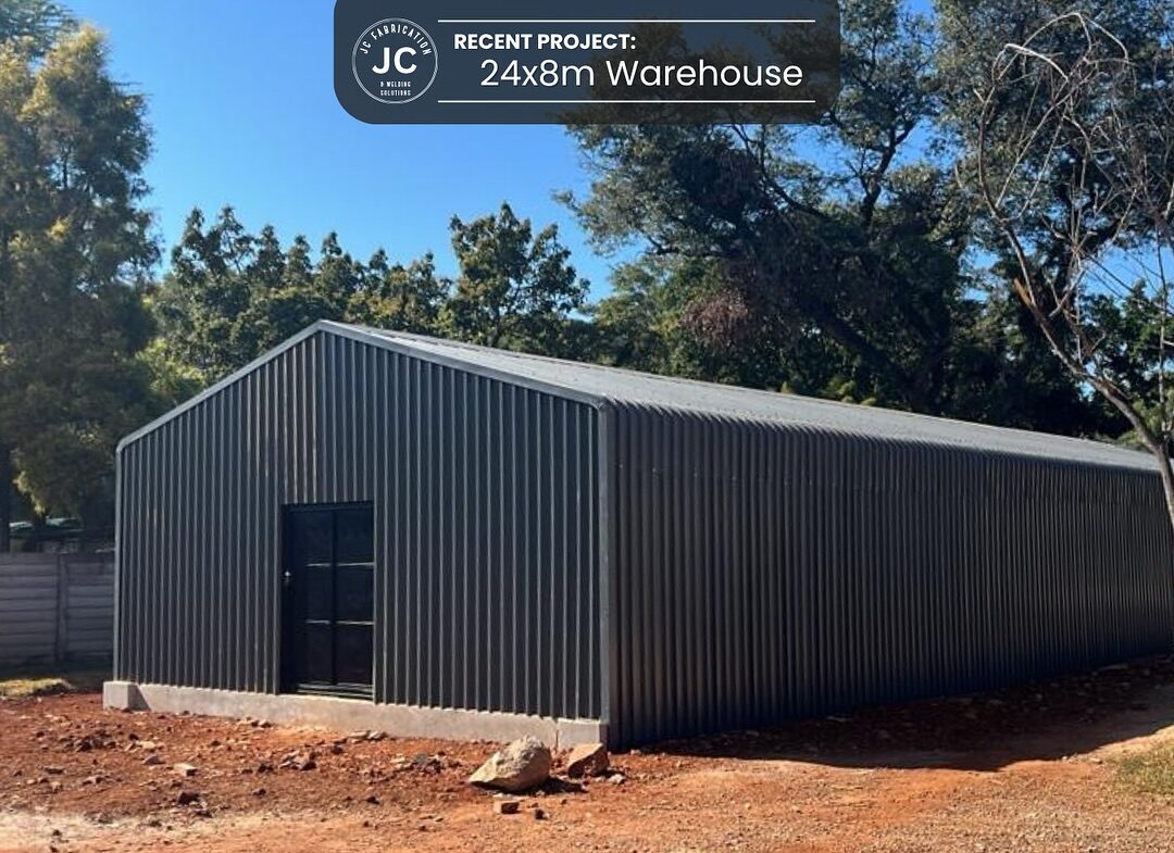JC Fabrication designed and constructed a 24x8m warehouse for a client, showcasing our capability to deliver large-scale steel projects with the same precision and quality as our smaller custom builds.
